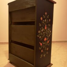 Egyedi fiókos, fa komód. Méretei, fiókjainak száma igény szerint változhat. A fotón látható szekrény mérete 65x40x100 cm. Az ár erre a méretre vonatkozik.